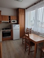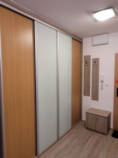 Dovolujeme si Vám nabídnout prodej částečně zařízeného bytu 2+1 se zasklenou lodžií a sklepem, v 6. podlaží revitalizovaného domu s výtahem ve Svitavách, ul. Malé náměstí. Byt je po velice zdařilé rekonstrukci, orientovaný na východ a západ, je o celkové ploše 60,70 m2 a obsahuje vstupní chodbu s vestavěnou skříní, koupelnu s WC, sprchovým koutem a pračkou. V ložnici je vestavěná skříň, dvoulůžko s nočními stolky, vstup na zasklenou lodžii. Obývací pokoj, částečně vybavený nábytkem, sousedí s kuchyní, kde je kuchyňská linka se zabudovanými spotřebiči, stůl a židle. Okna jsou plastová se žaluziemi, záclonami, garnýžemi, vytápění je dálkové, horkovodem, dveře plné i prosklené i posuvné (obývací pokoj).